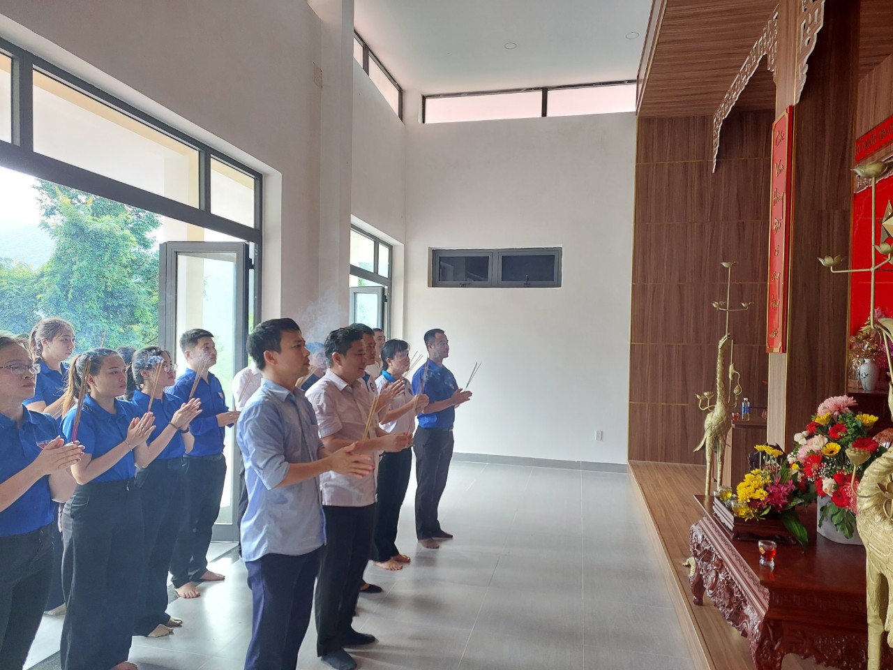 Đồng chí Vương Duy Tú - Bí thư Chi bộ, giám đốc Trung tâm, Đ/c Mai Thành Phúc - Phó bí thư chi bộ, phó giám đốc Trung tâm, Chủ tịch Công đoàn cùng đoàn dâng hương tại Nghĩa Trang Liệt sỹ xã Hòa Tiến, huyện Hòa Vang, TP Đà Nẵng