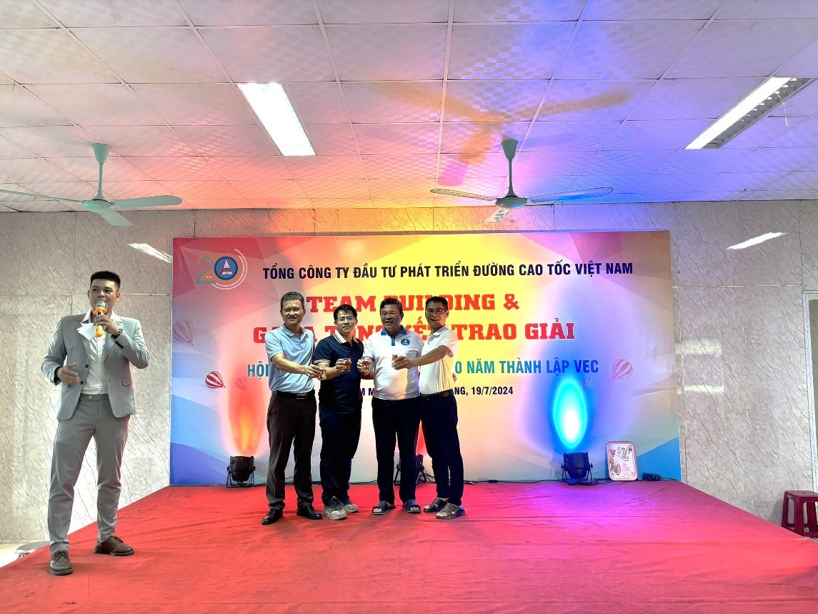Tiếp theo các hoạt động thể thao trong khuôn khổ chương trình chào mừng kỷ niệm 20 năm ngày thành lập Tổng công ty Đầu tư phát triển đường cao tốc Việt Nam (VEC), ngày 19/7 cụm VHTT khu vực miền Trung đã tổ chức thi kéo co, team building và tổng kết trao giải.