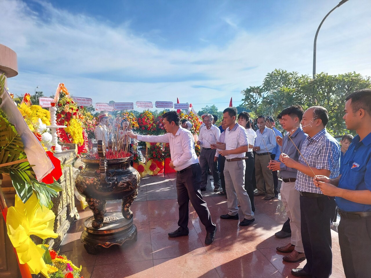 Đồng chí Vương Duy Tú - Bí thư Chi bộ, giám đốc Trung tâm, Đ/c Mai Thành Phúc - Phó bí thư chi bộ, phó giám đốc Trung tâm, Chủ tịch Công đoàn cùng đoàn dâng hương tại Nghĩa Trang Liệt sỹ xã Hòa Tiến, huyện Hòa Vang, TP Đà Nẵng