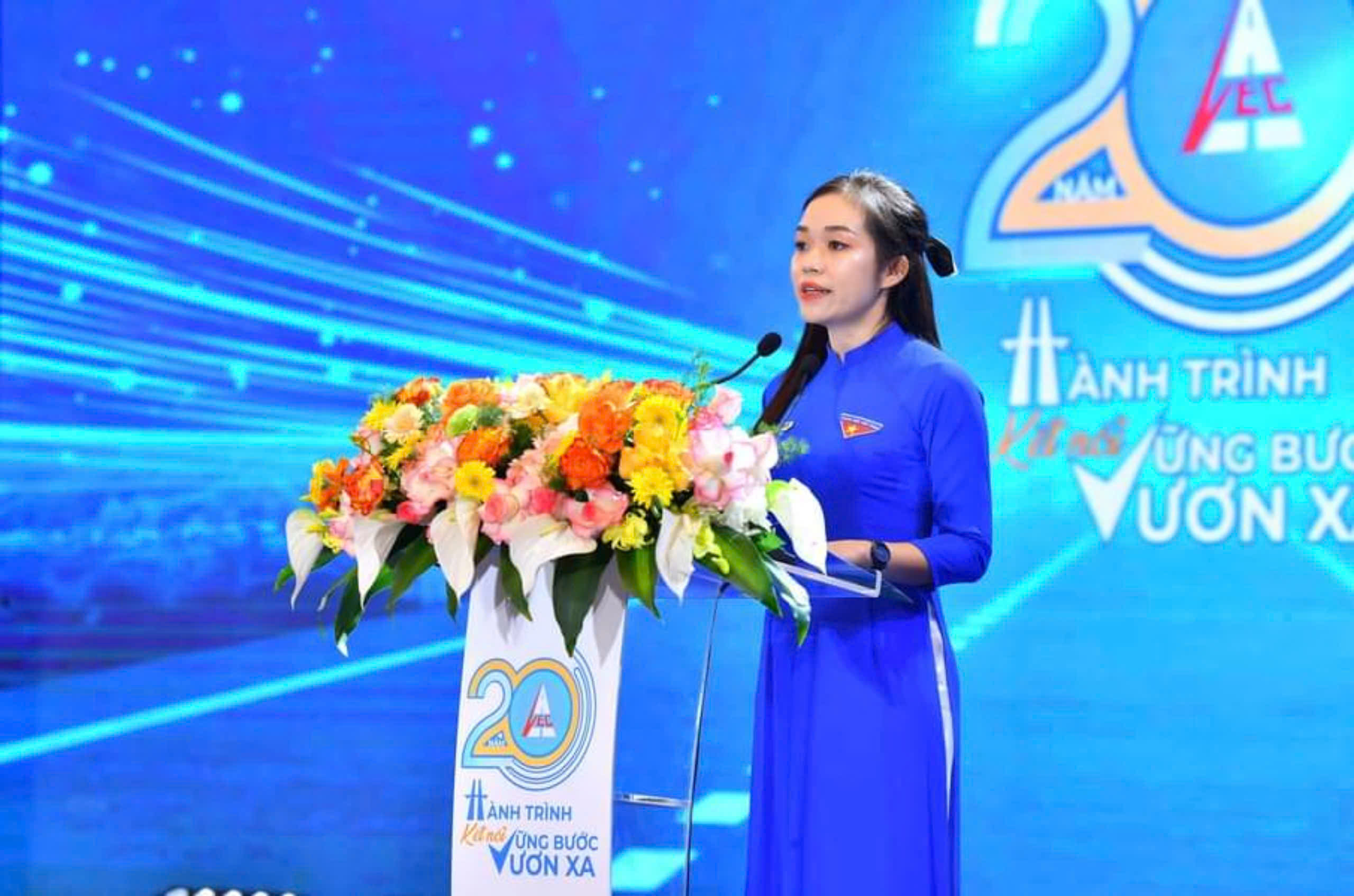 Đ/c Phạm Mai Chi - Phó Bí thư Đoàn thanh niên Tổng công ty đại diện cho tuổi trẻ VEC phát biểu tại Lễ kỷ niệm |