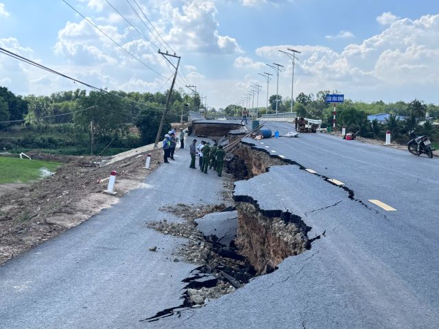 Sự cố sụt lún đường đầu cầu Hoà Bình mới xảy ra tại huyện Châu Thành, tỉnh Tây Ninh